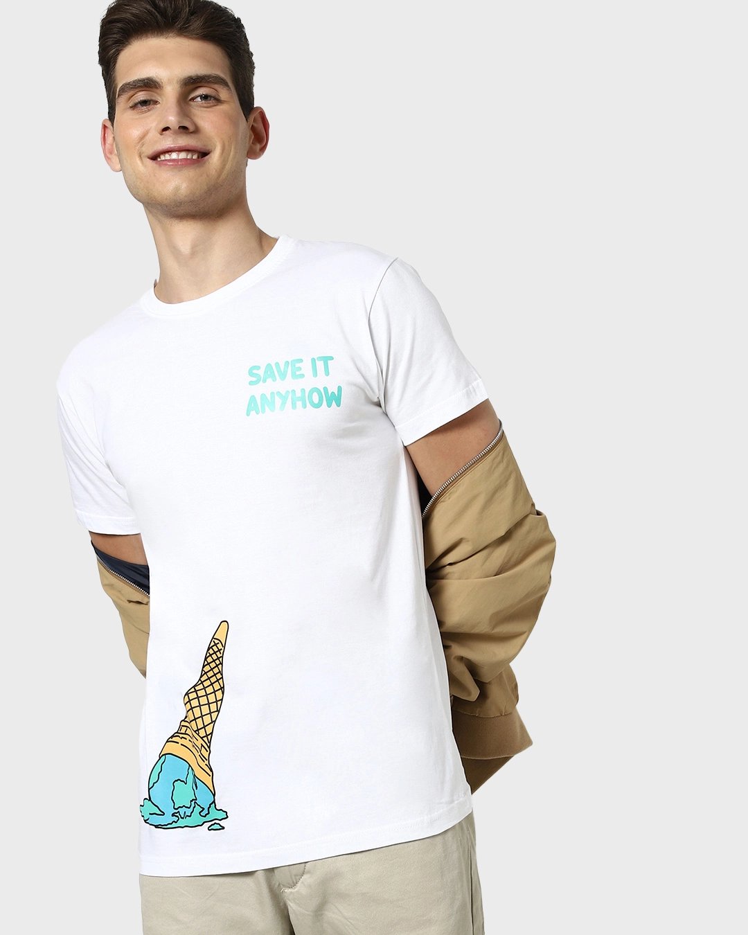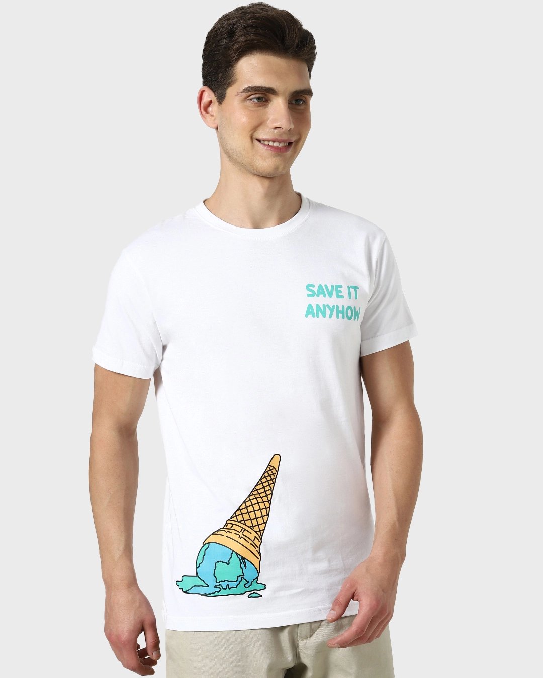 Save your planet with this Save It Anyhow Men's Half Sleeve T-Shirt. Style this white t-shirt with a pair of jeans and cool sneakers for a classy look.