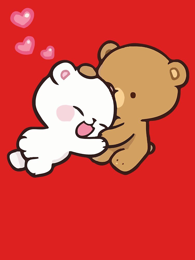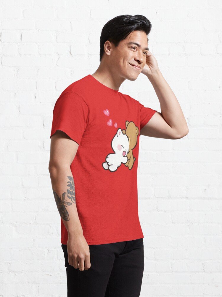 Cute Milk And Mocha Bears Classic Couple T-Shirt Red. Available Women And Men Signal T-Shirt.