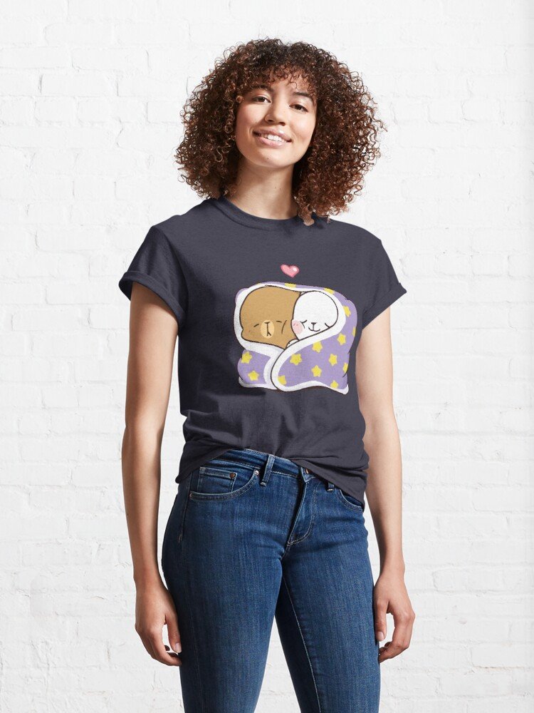 Mochi Peach and Goma Cute Cat Classic Navy Blue T-Shirt. Available in Multiple Size.