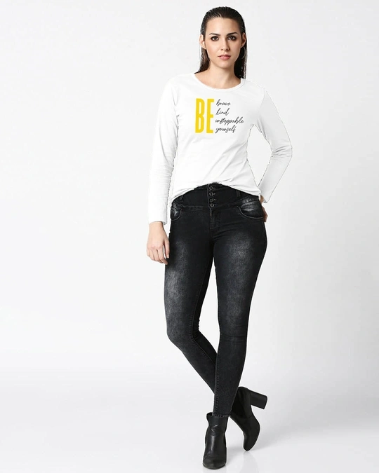 Flaunt a cute look in this Minimal Believe Women's Printed Full Sleeve T-Shirt.