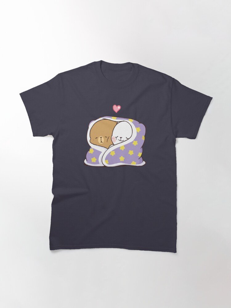 Mochi Peach and Goma Cute Cat Classic Navy Blue T-Shirt. Available in Multiple Size.