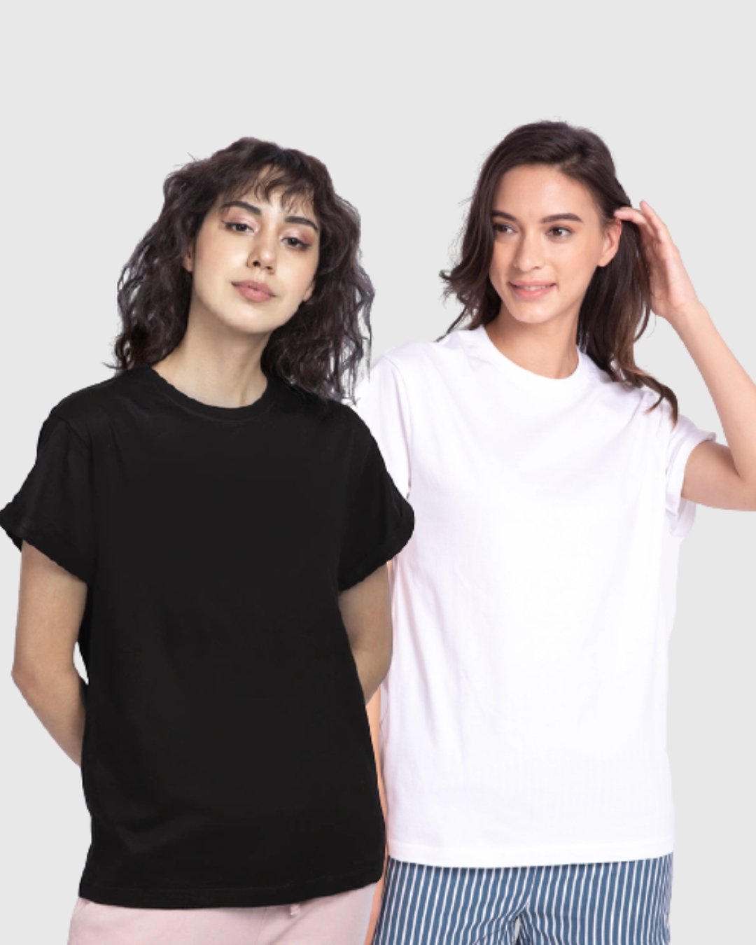 Women's Plain T-Shirt - Pack Of 2 (Black-White).