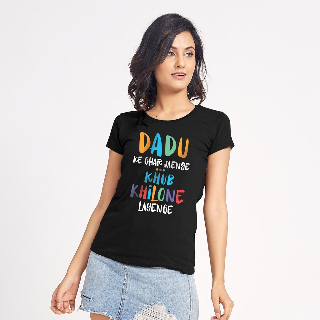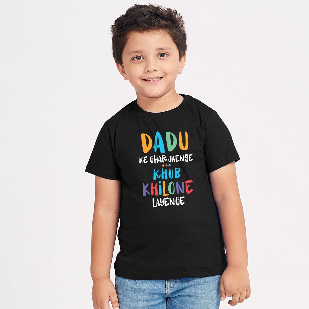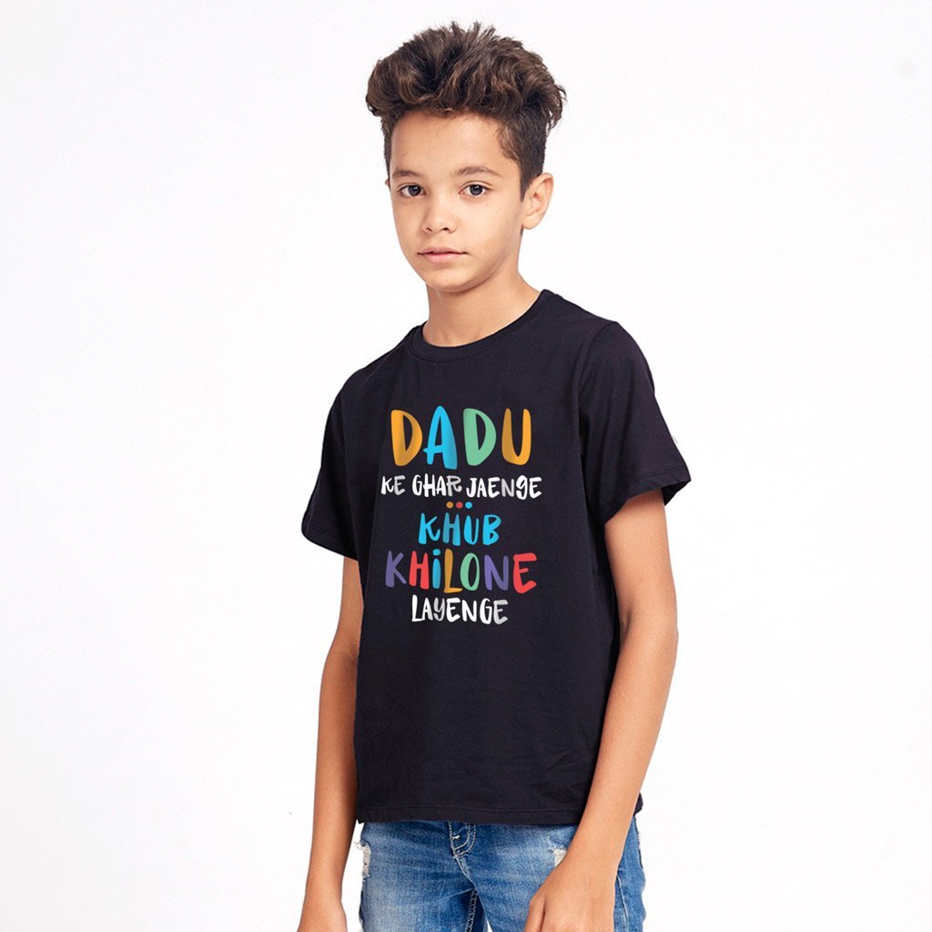 Start your holiday season by Dadu Ke Ghar Jayenge Matching T-Shirt For Family Black ( Pack Of 4 ).