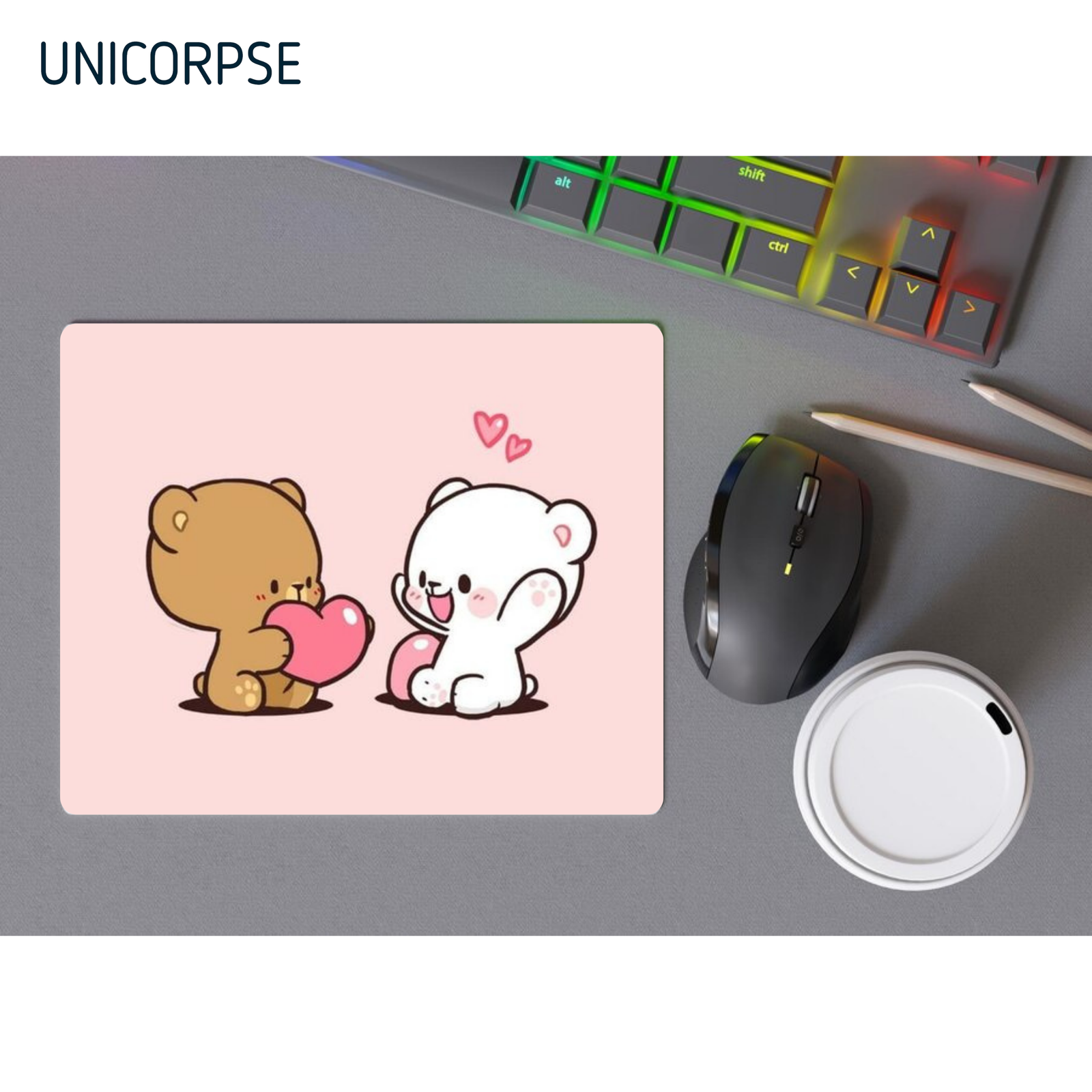 These gaming, Milk Mocha Bear mouse pad comes with a superbly smooth surface. It is designed to complement and increase the performance of your mouse. The base is made of foam rubber that prevents the mouse pad from slipping. Take your gaming experience. Unicorpse mouse pads low price.