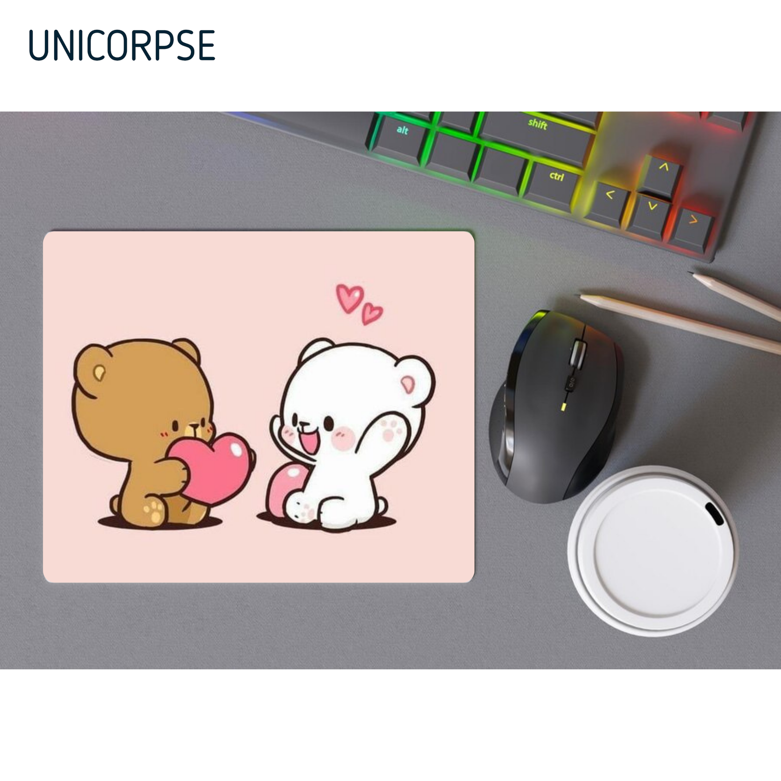 These gaming, Milk Mocha Bear mouse pad comes with a superbly smooth surface. It is designed to complement and increase the performance of your mouse. The base is made of foam rubber that prevents the mouse pad from slipping. Take your gaming experience. Unicorpse mouse pads low price.